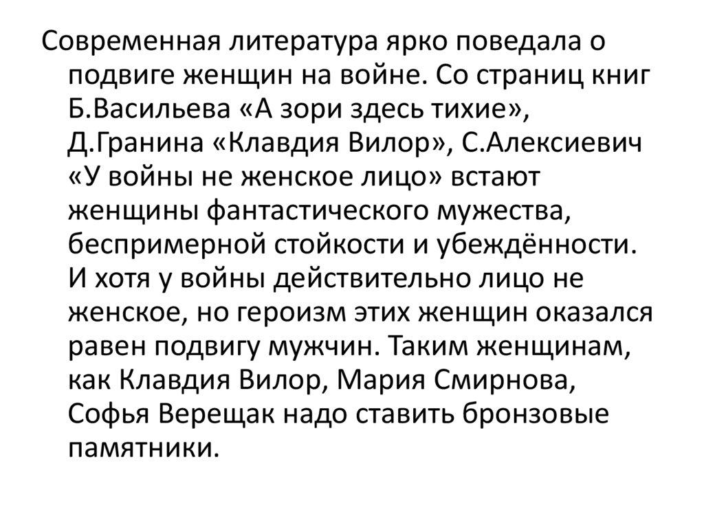 Д.Гранина «Клавдия Вилор», С.Алексиевич