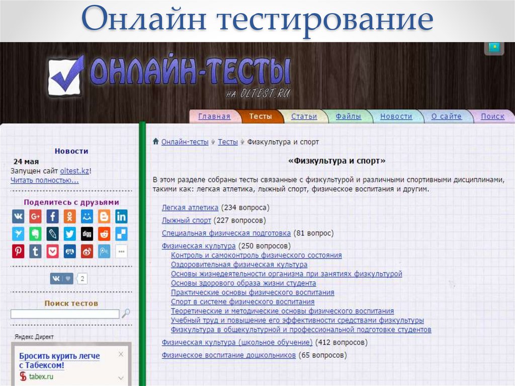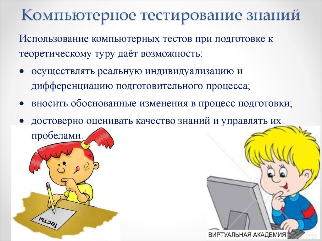 Компьютерное тестирование знанийИспользование компьютерных тестов при подготовке к