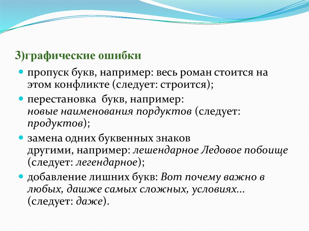3)графические ошибкипропуск букв, например: весь роман стоится на