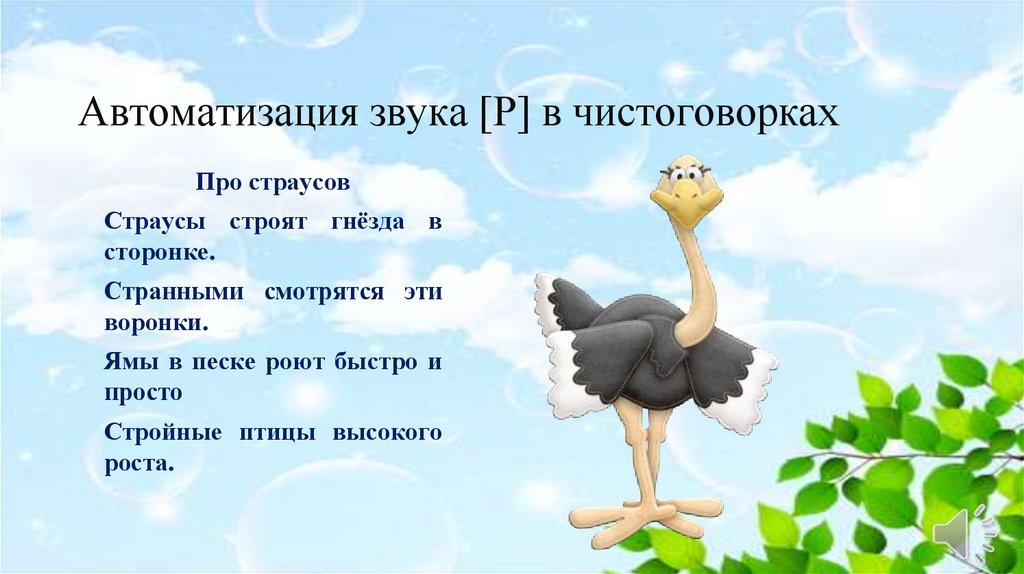 Автоматизация звука [Р] в чистоговоркахПро страусов