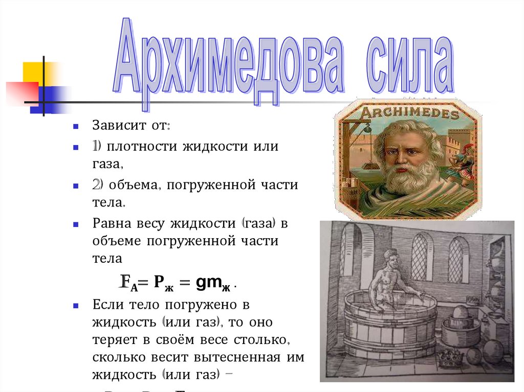 FА= Рж = gmж .