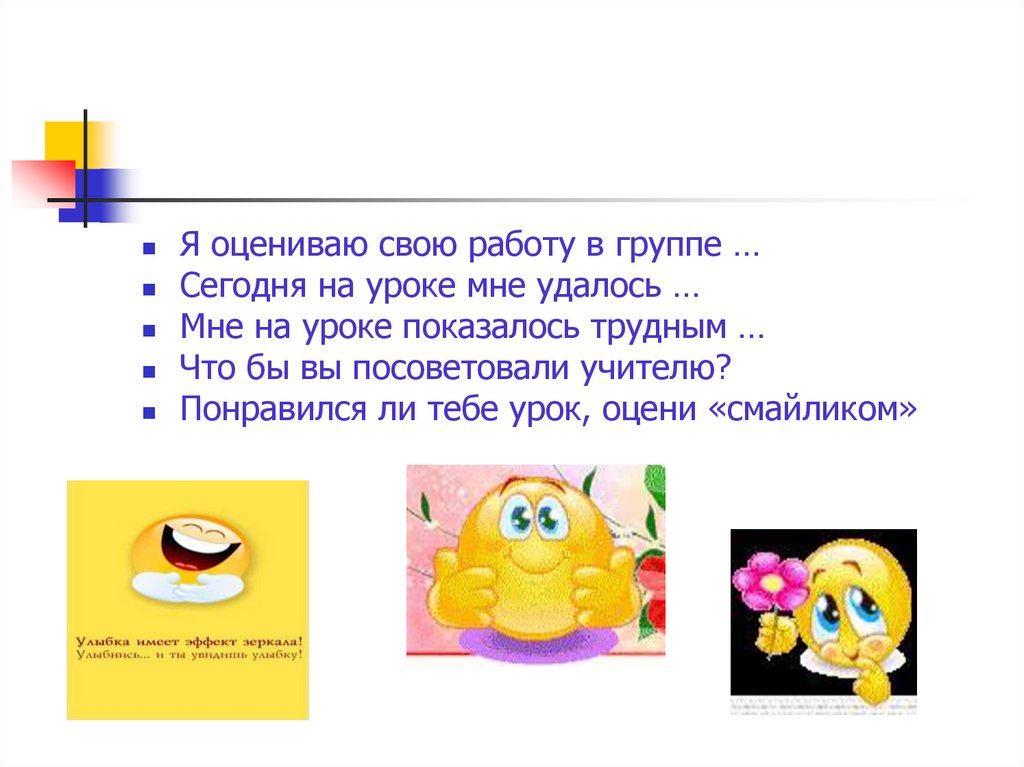 Понравился ли тебе урок, оцени «смайликом»