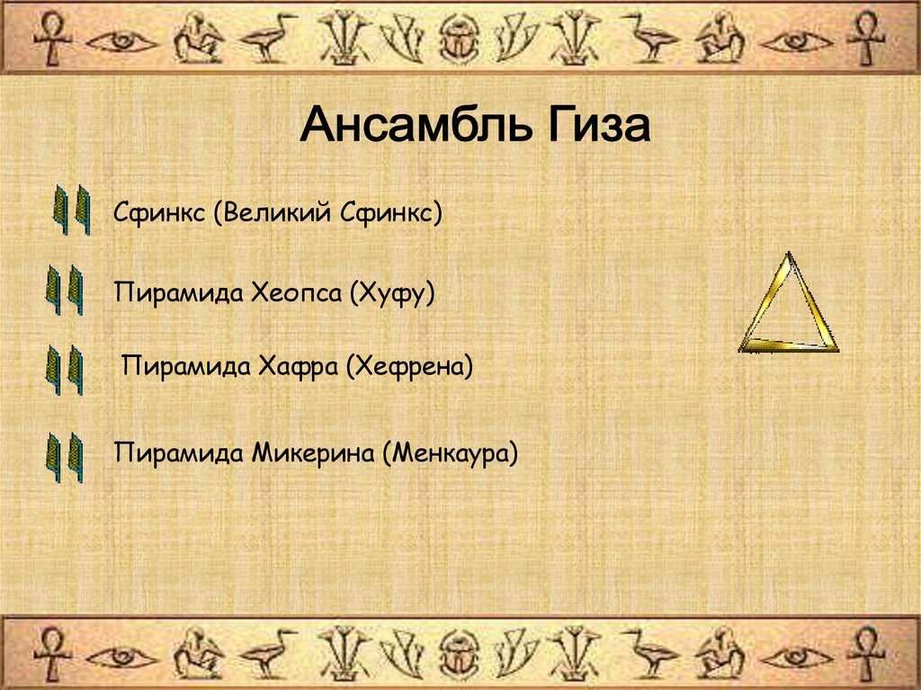Сфинкс (Великий Сфинкс)Пирамида Хеопса (Хуфу)