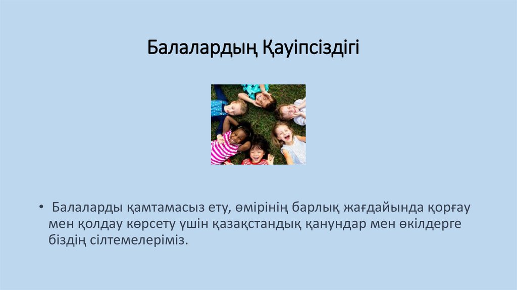 Балалардың Қауіпсіздігі• Балаларды қамтамасыз ету, өмірінің барлық жағдайында қорғау
