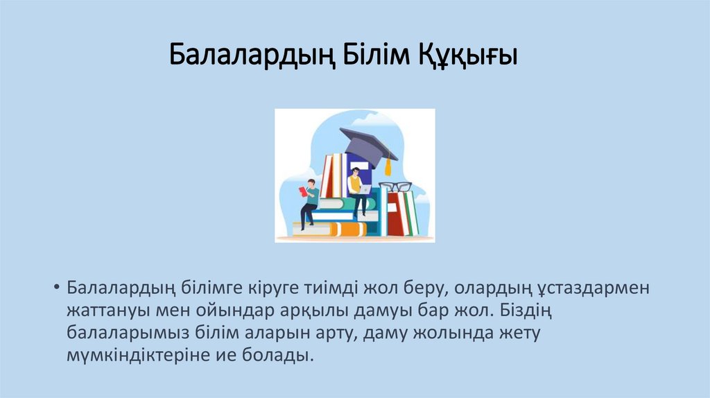Балалардың Білім Құқығы• Балалардың білімге кіруге тиімді жол беру, олардың ұстаздармен