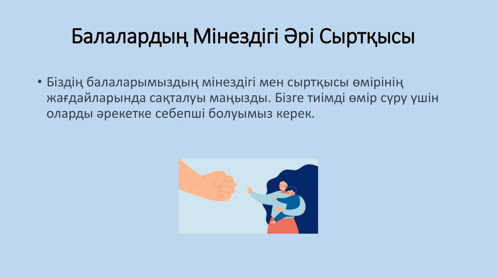 Балалардың Мінездігі Әрі Сыртқысы• Біздің балаларымыздың мінездігі мен сыртқысы өмірінің