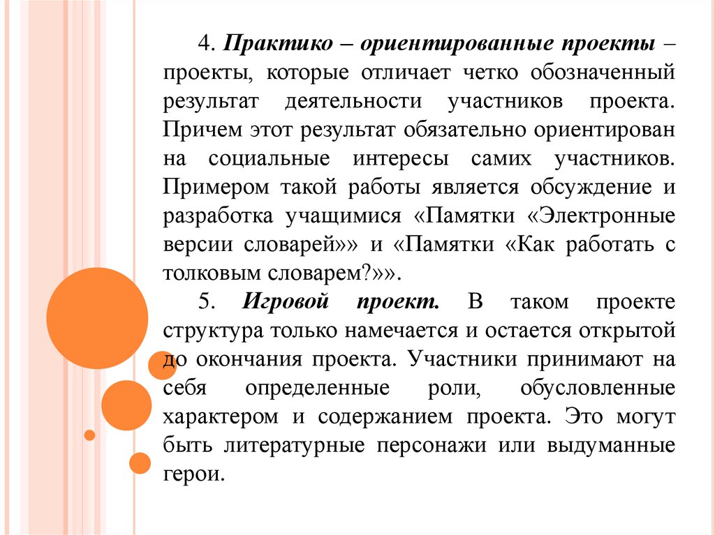 4. Практико – ориентированные проекты –проекты, которые отличает четко обозначенный