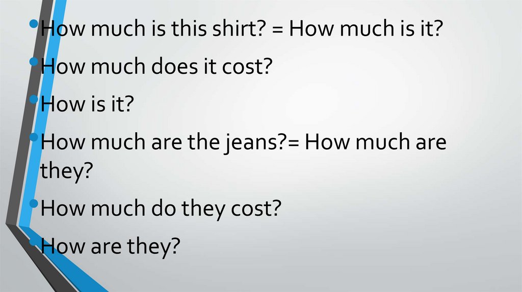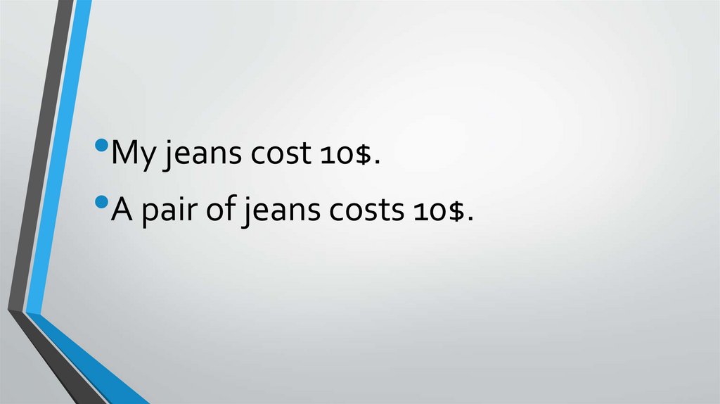 •My jeans cost 10$.•A pair of jeans costs 10$.