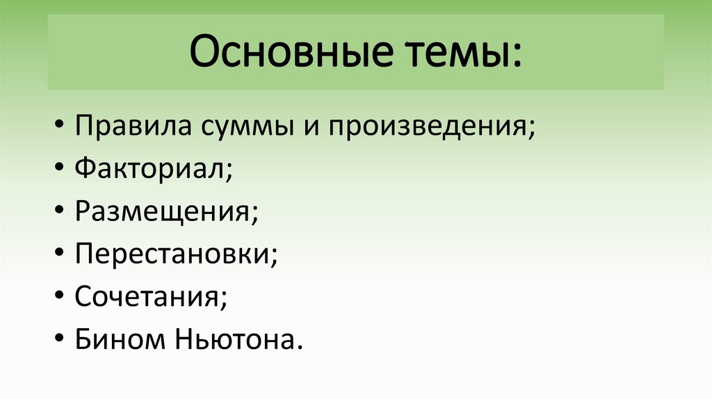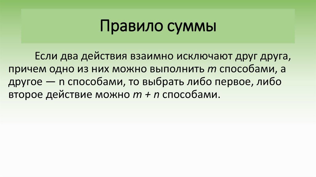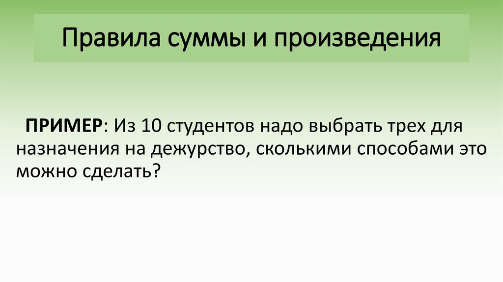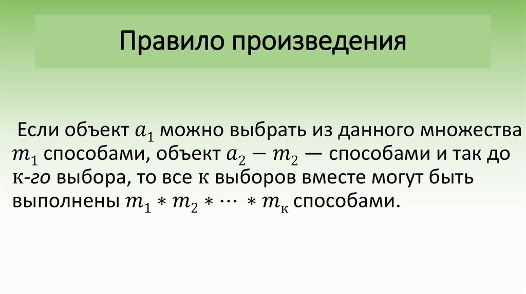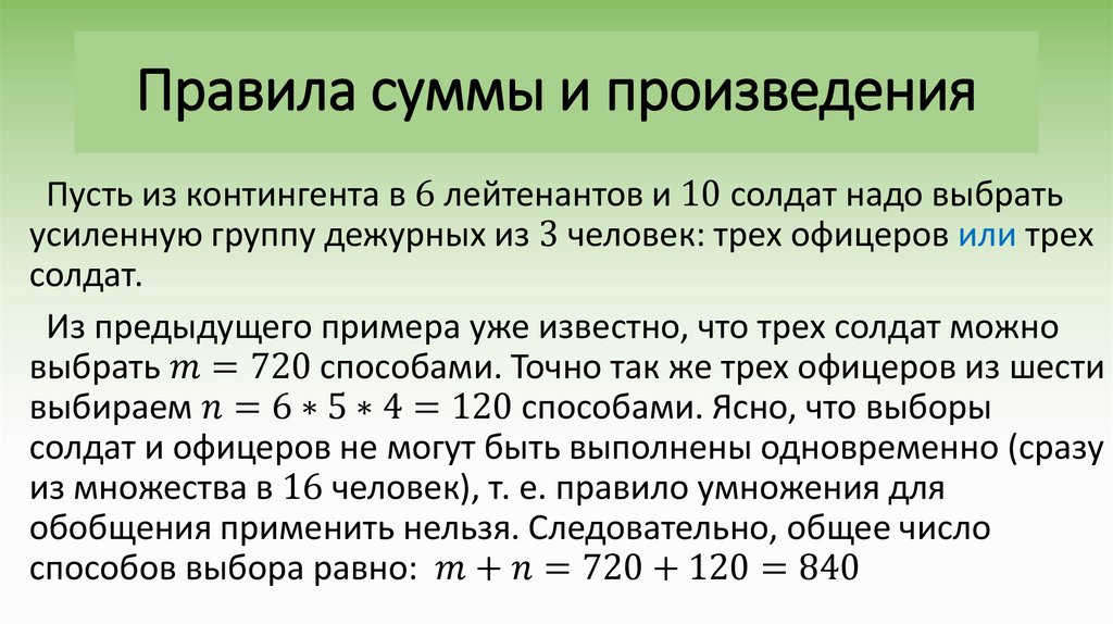 • Правила суммы и произведения;
