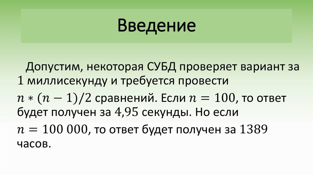Допустим, некоторая СУБД проверяет вариант за