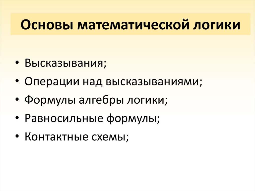 Основы математической логики• Высказывания;