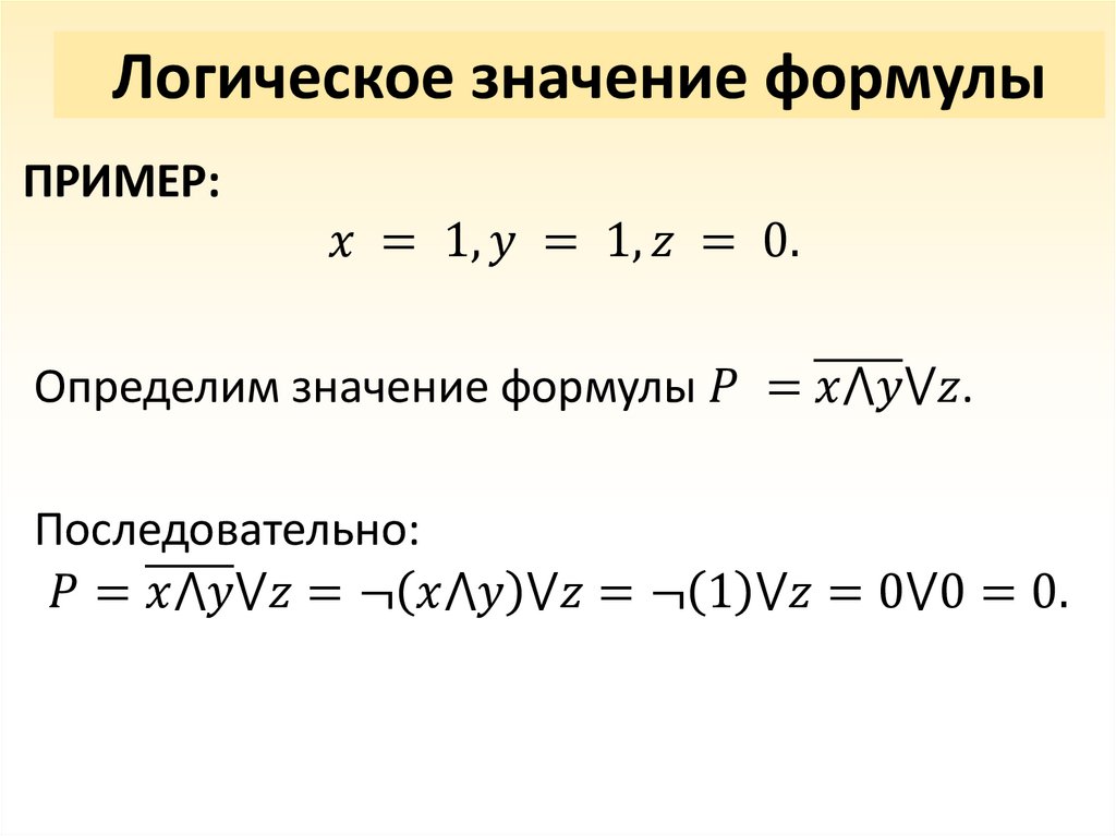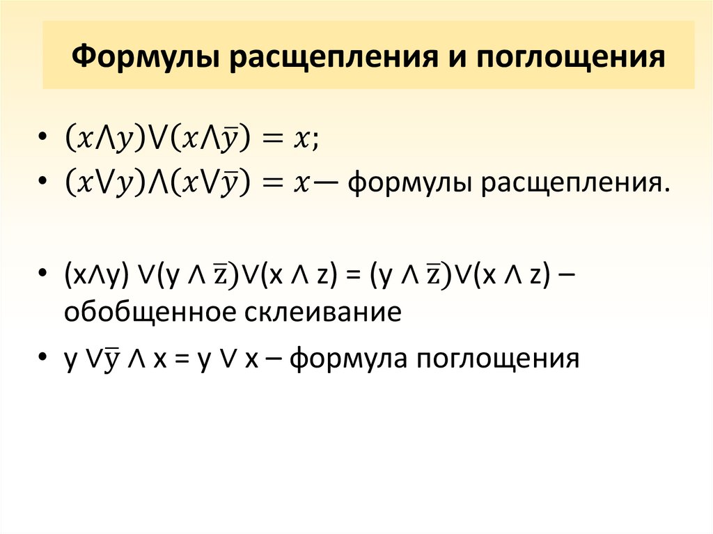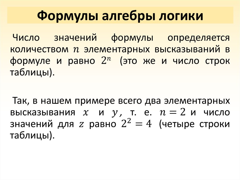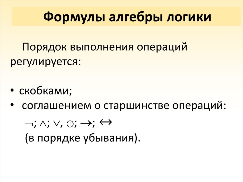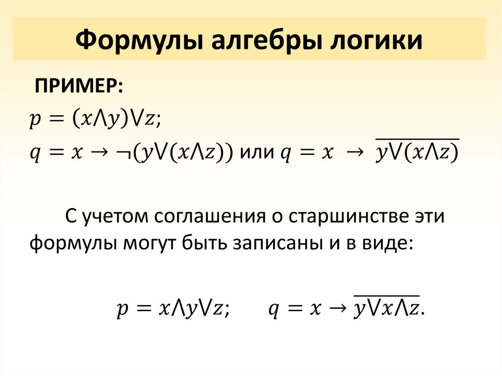 • Формулы алгебры логики;