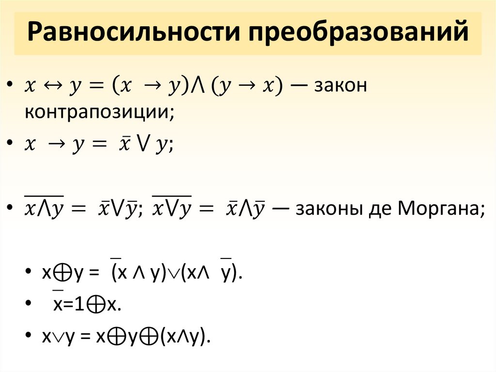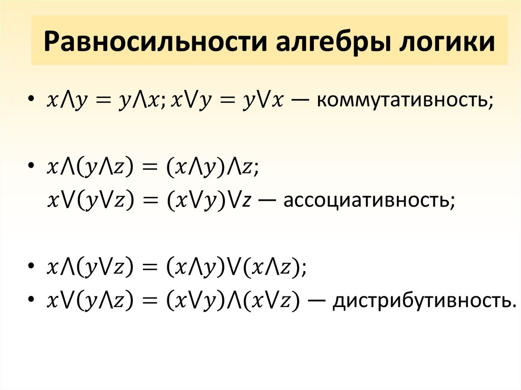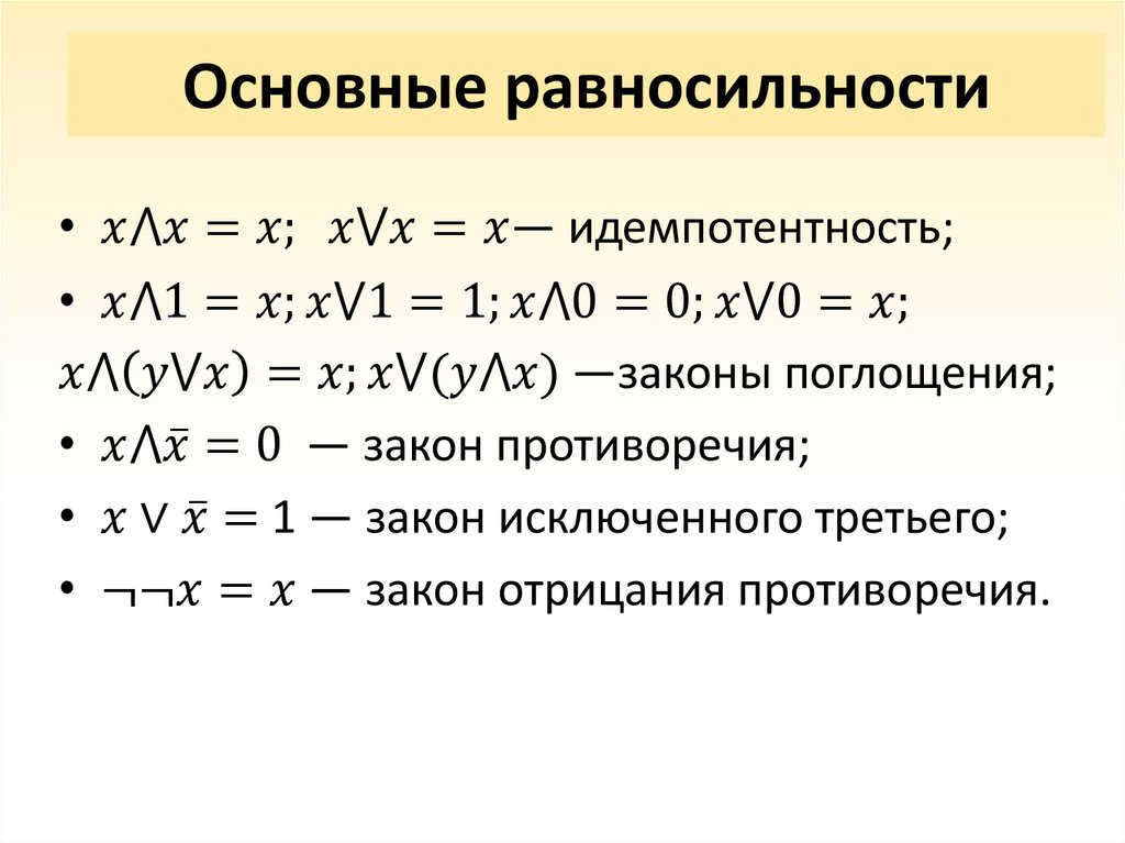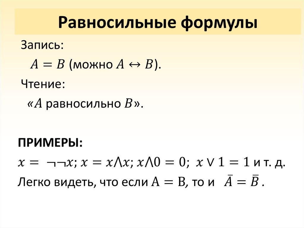 • Равносильные формулы;