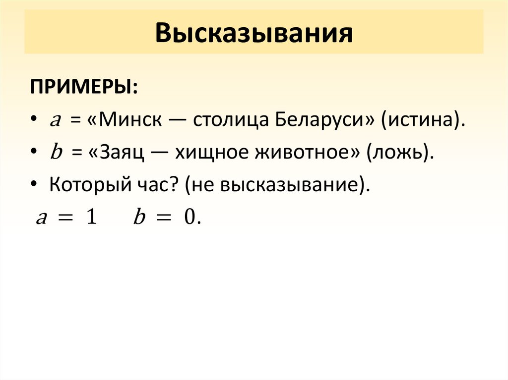ВысказыванияПРИМЕРЫ: