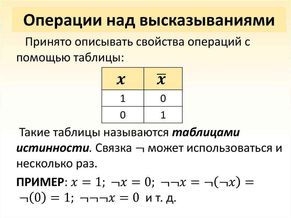 • Операции над высказываниями;