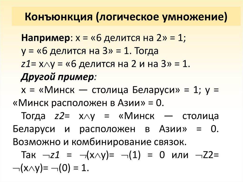 • a = «Минск — столица Беларуси» (истина).