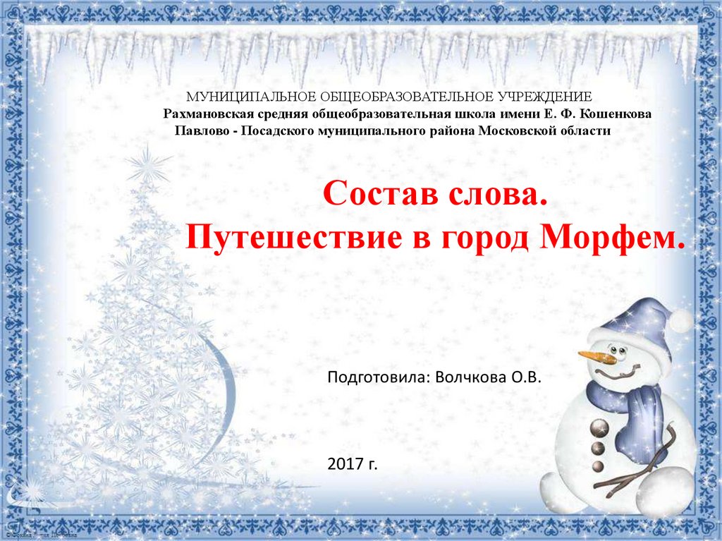 МУНИЦИПАЛЬНОЕ ОБЩЕОБРАЗОВАТЕЛЬНОЕ УЧРЕЖДЕНИЕРахмановская средняя общеобразовательная школа имени Е. Ф. Кошенкова
