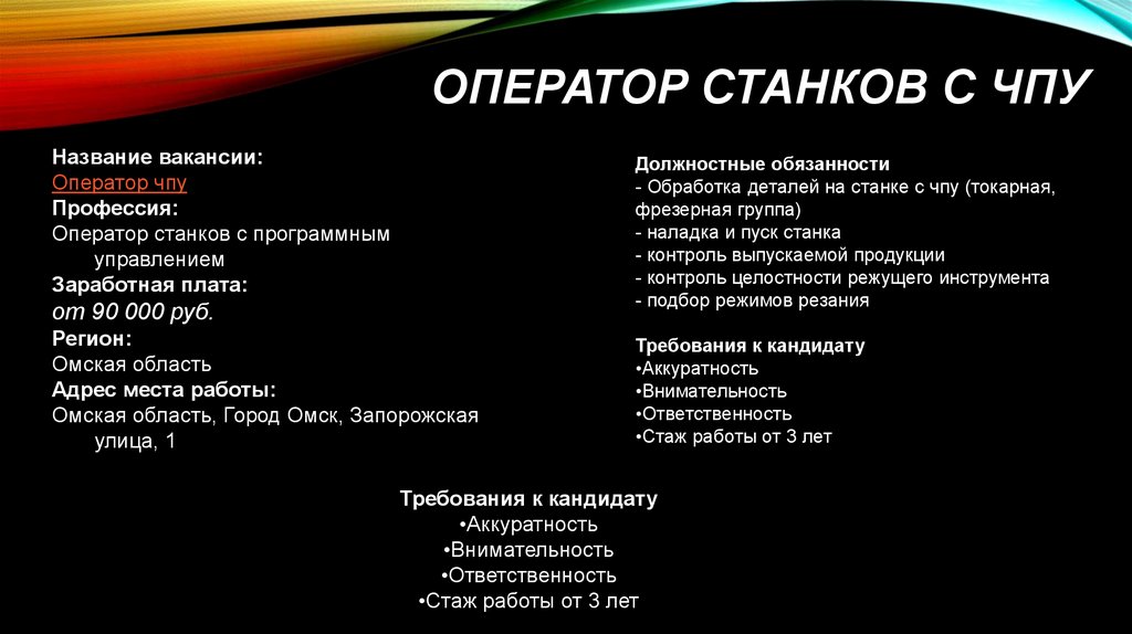 ОПЕРАТОР СТАНКОВ С ЧПУНазвание вакансии: