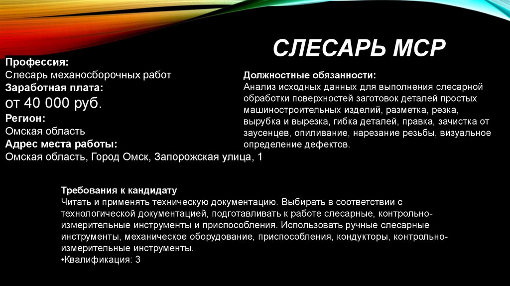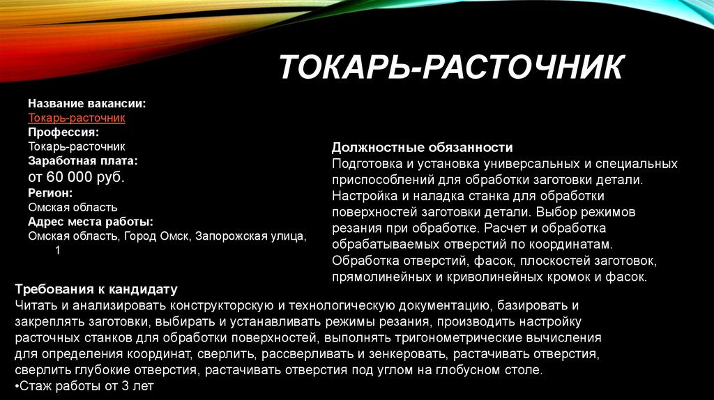 ТОКАРЬ-РАСТОЧНИКНазвание вакансии:
