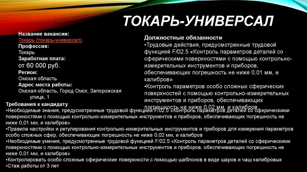 ТОКАРЬ-УНИВЕРСАЛНазвание вакансии: