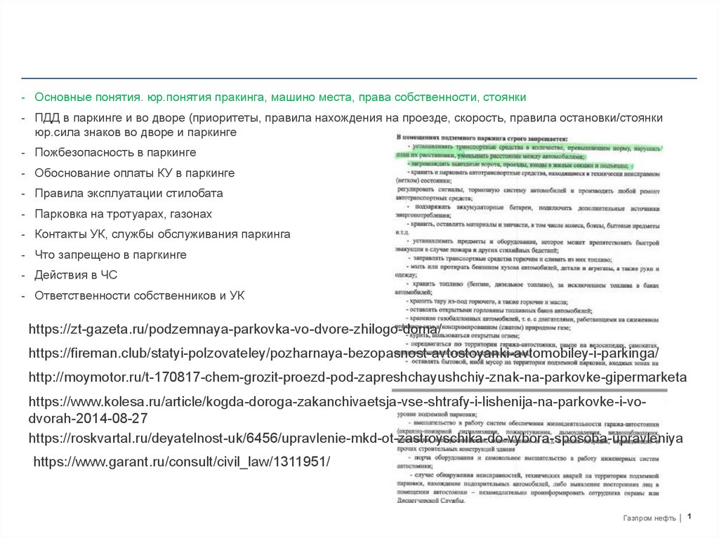 - Основные понятия. юр.понятия пракинга, машино места, права собственности, стоянки- ПДД в паркинге и во дворе (приоритеты, правила нахождения на проезде, скорость, правила остановки/стоянки