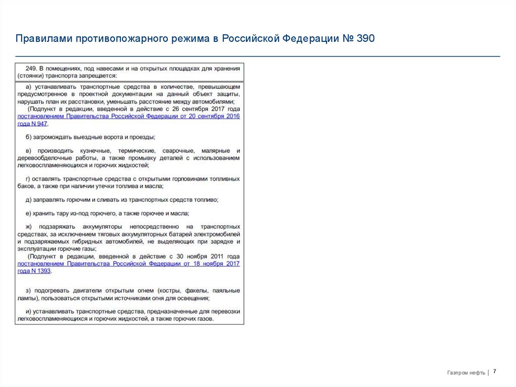 Правилами противопожарного режима в Российской Федерации № 390Газпром нефть