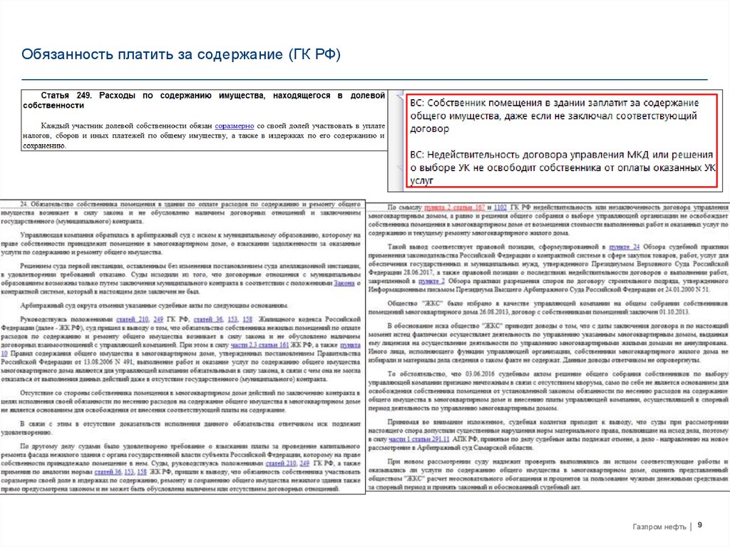 Обязанность платить за содержание (ГК РФ)Газпром нефть