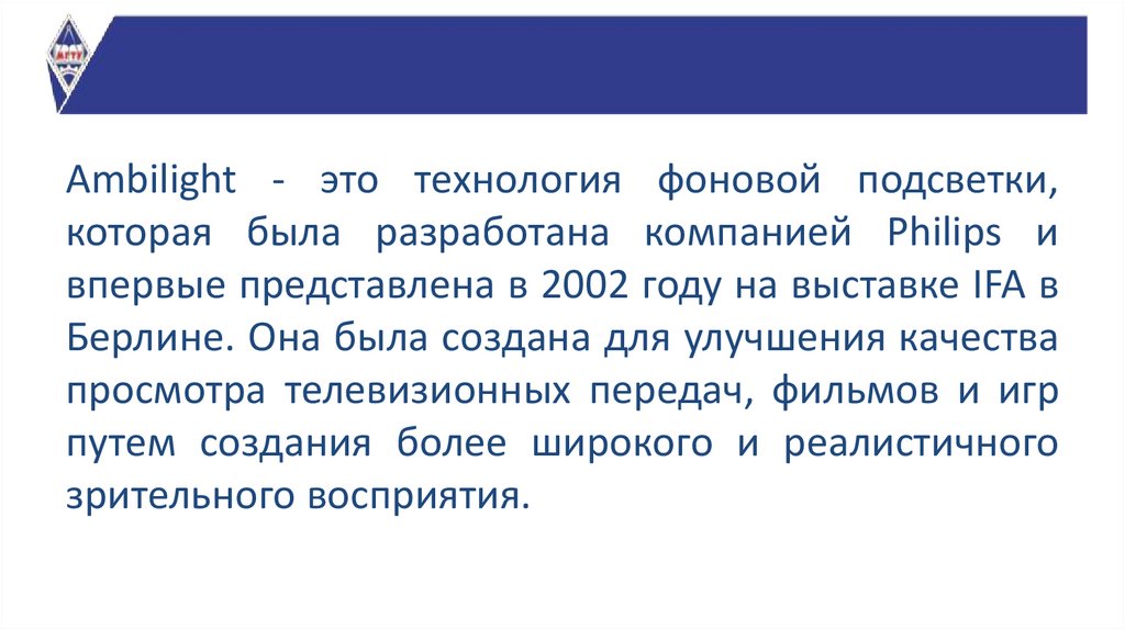 Ambilight - это технология фоновой подсветки,которая была разработана компанией Philips и