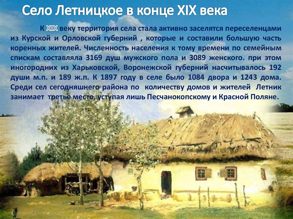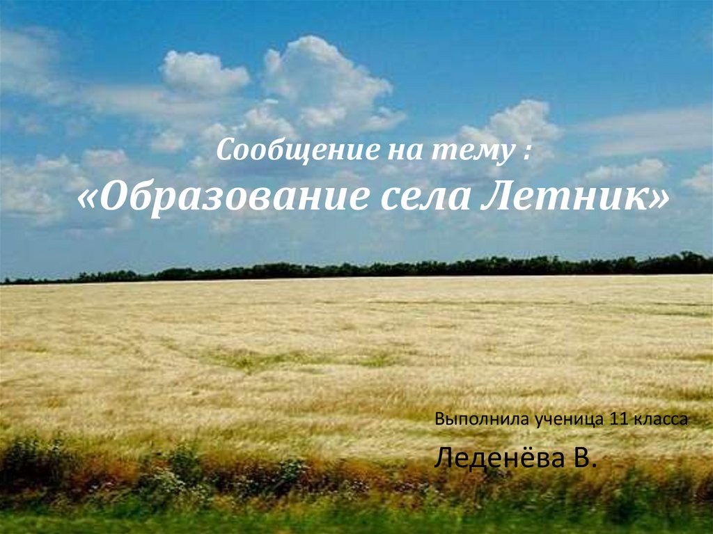 Сообщение на тему :«Образование села Летник»