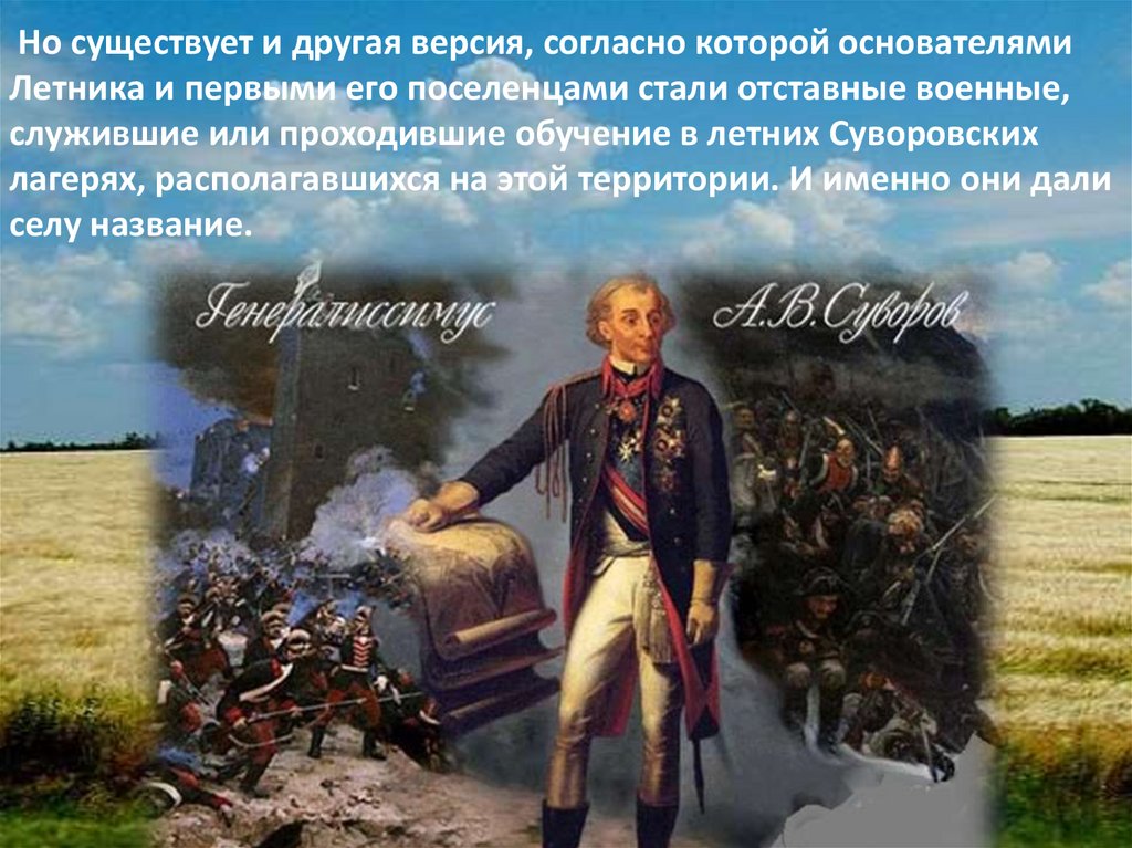 Но существует и другая версия, согласно которой основателямиЛетника и первыми его поселенцами стали отставные военные,