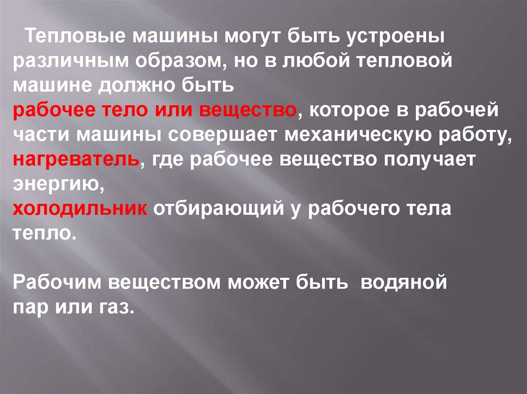 Тепловые машины могут быть устроеныразличным образом, но в любой тепловой