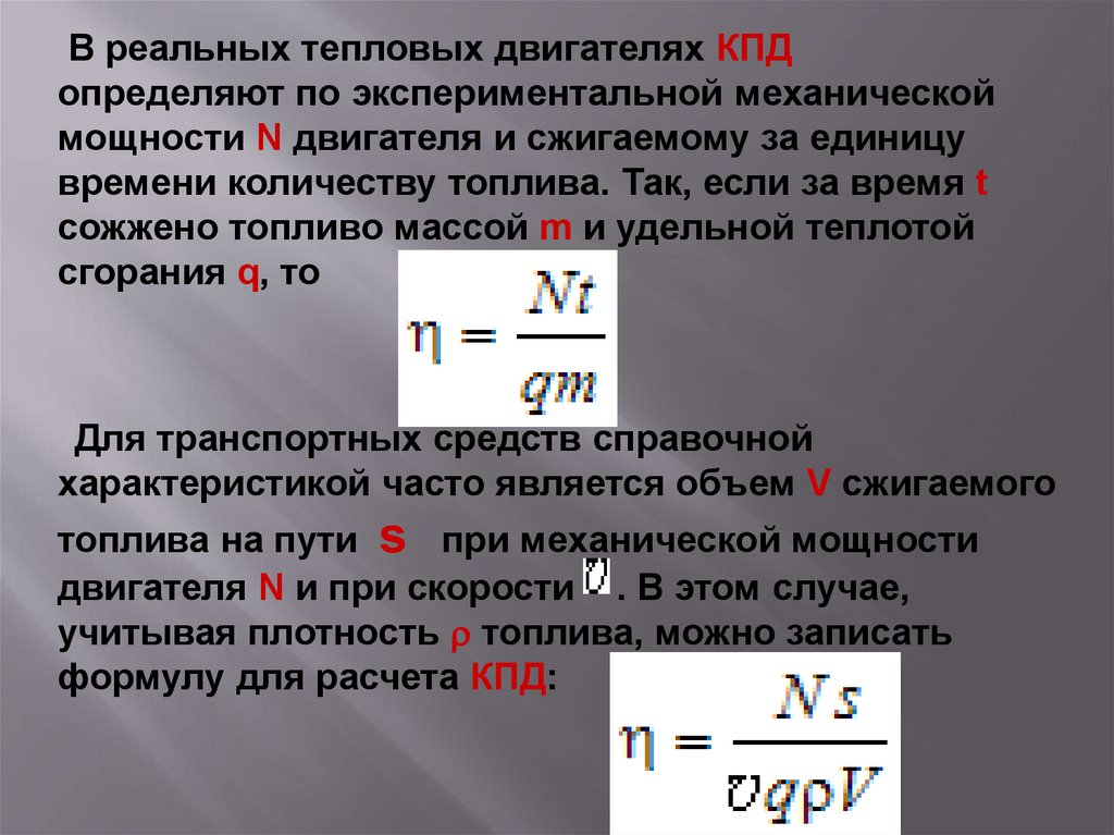 В реальных тепловых двигателях КПДопределяют по экспериментальной механической