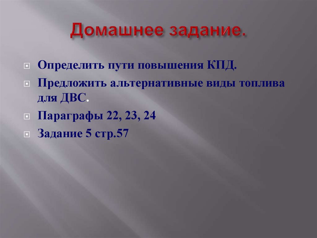 Определить пути повышения КПД.Предложить альтернативные виды топлива
