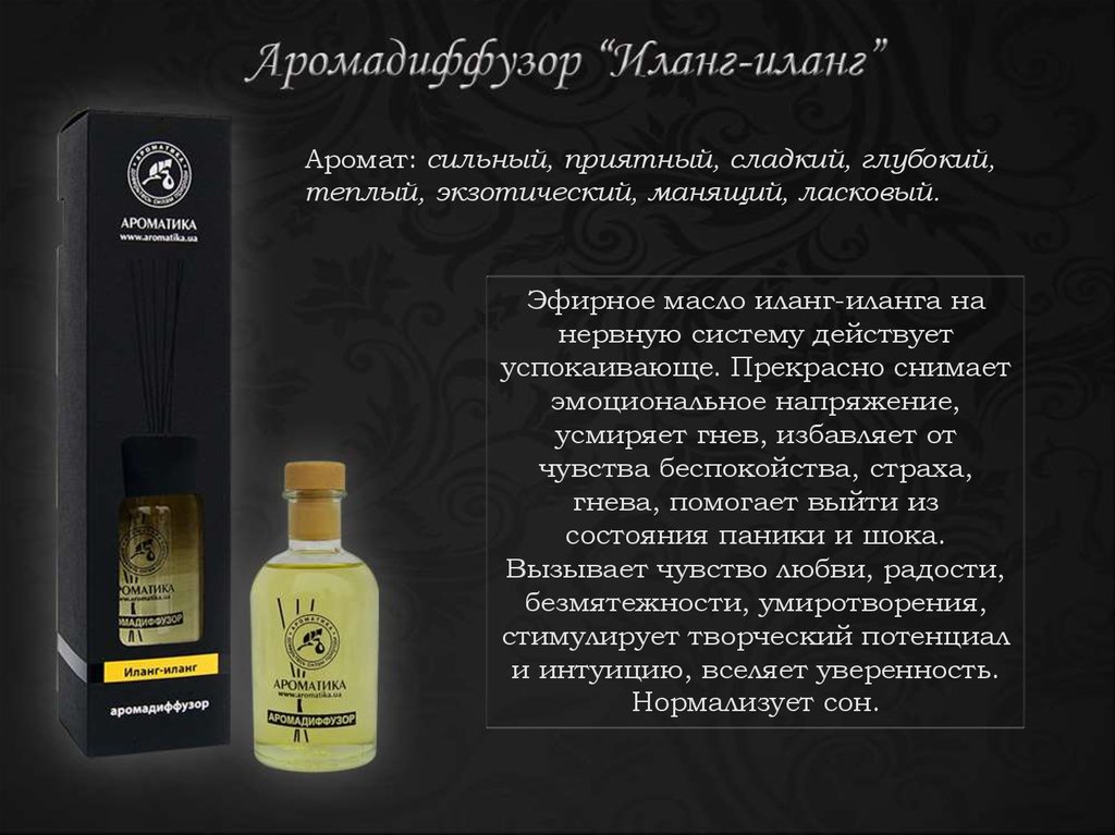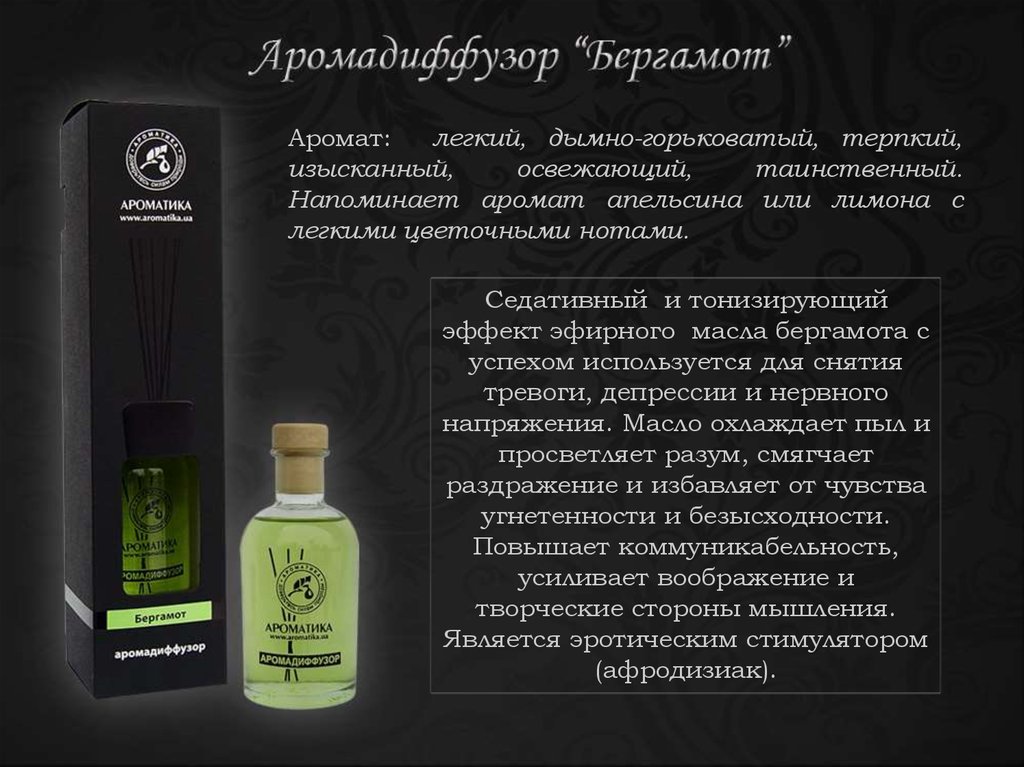 Легкий ненавязчивый аромат, наполняющий всё пространство в любое время года, днем и ночью,поможет переключиться от будничных проблем и полностью расслабиться. Аромат эфирных масел и