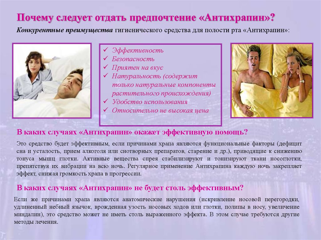 Это средство будет эффективным, если причинами храпа являются функциональные факторы (дефицит