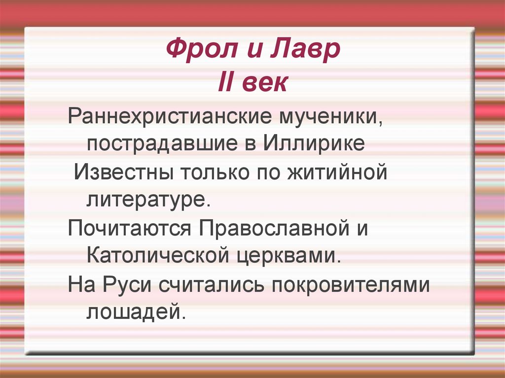 Православные святые Фрол и Лавр. Фрол и Лавр II век