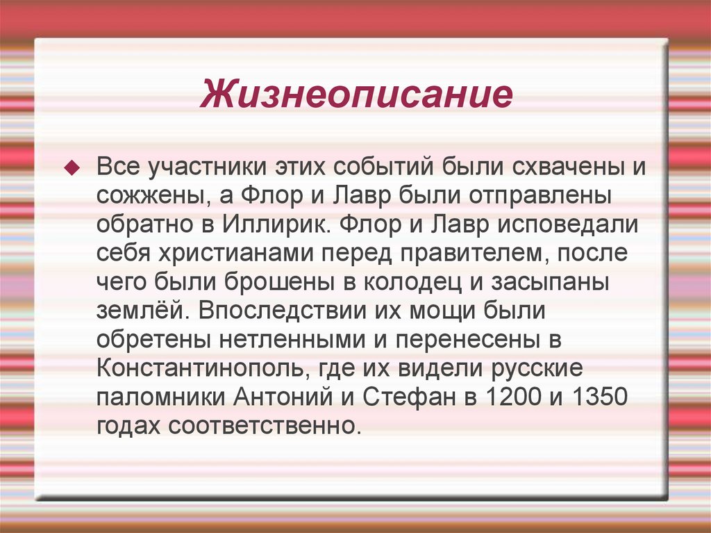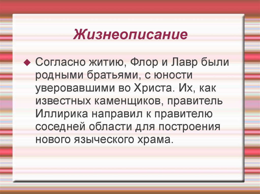 ЖизнеописаниеСогласно житию, Флор и Лавр были