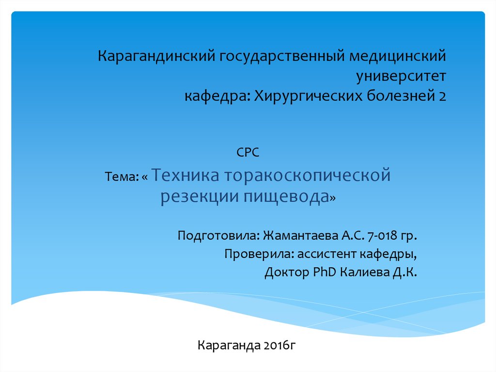 1. Карагандинский государственный медицинский университет кафедра: Хирургических болезней 2