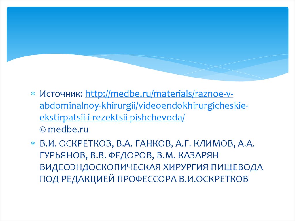 Источник: http://medbe.ru/materials/raznoe-vabdominalnoy-khirurgii/videoendokhirurgicheskieekstirpatsii-i-rezektsii-pishchevoda/© medbe.ru