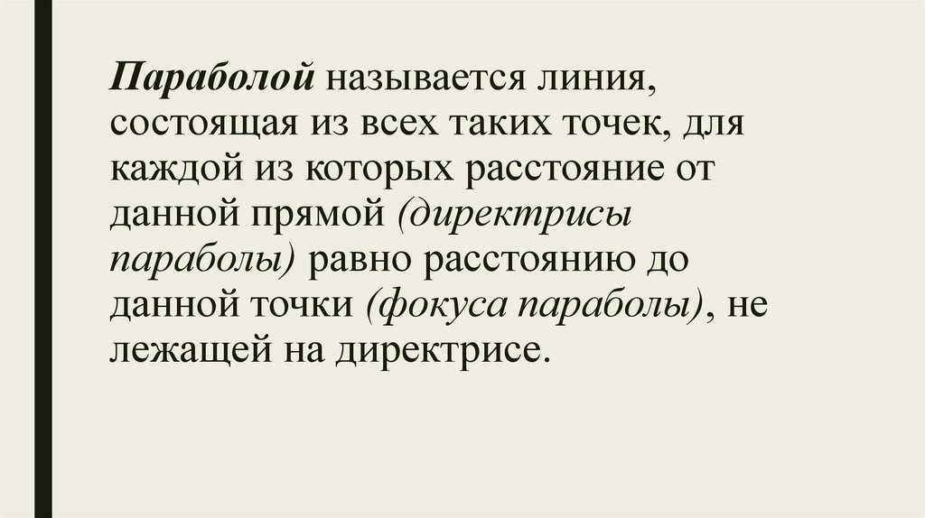 Параболой называется линия,состоящая из всех таких точек, для