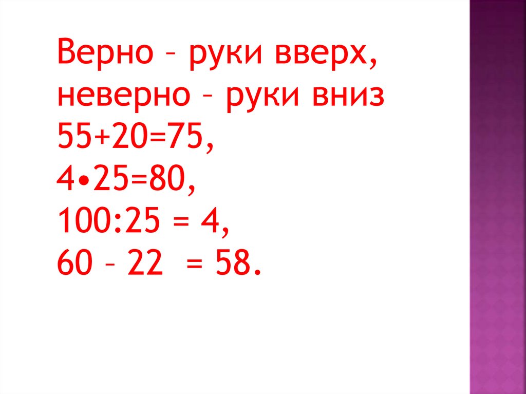 Верно – руки вверх,неверно – руки вниз