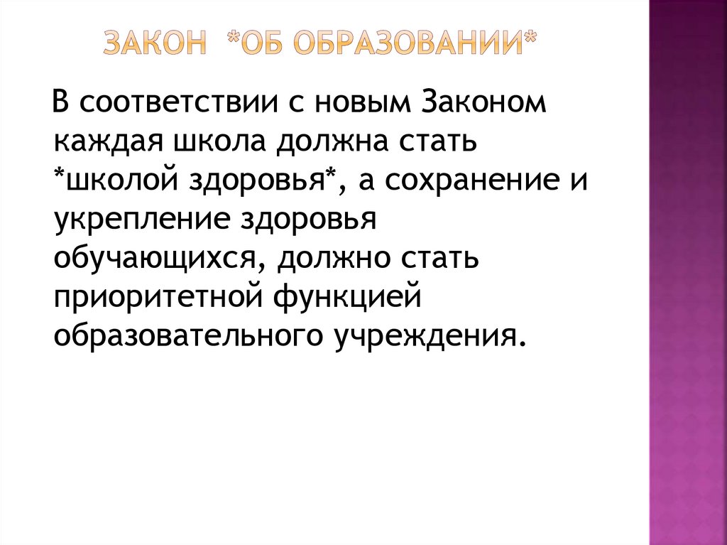 *школой здоровья*, а сохранение и