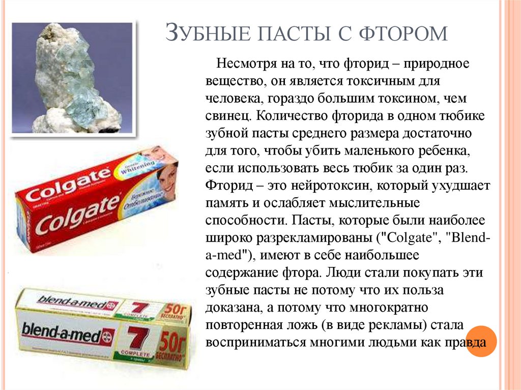 ЗУБНЫЕ ПАСТЫ С ФТОРОМНесмотря на то, что фторид – природное