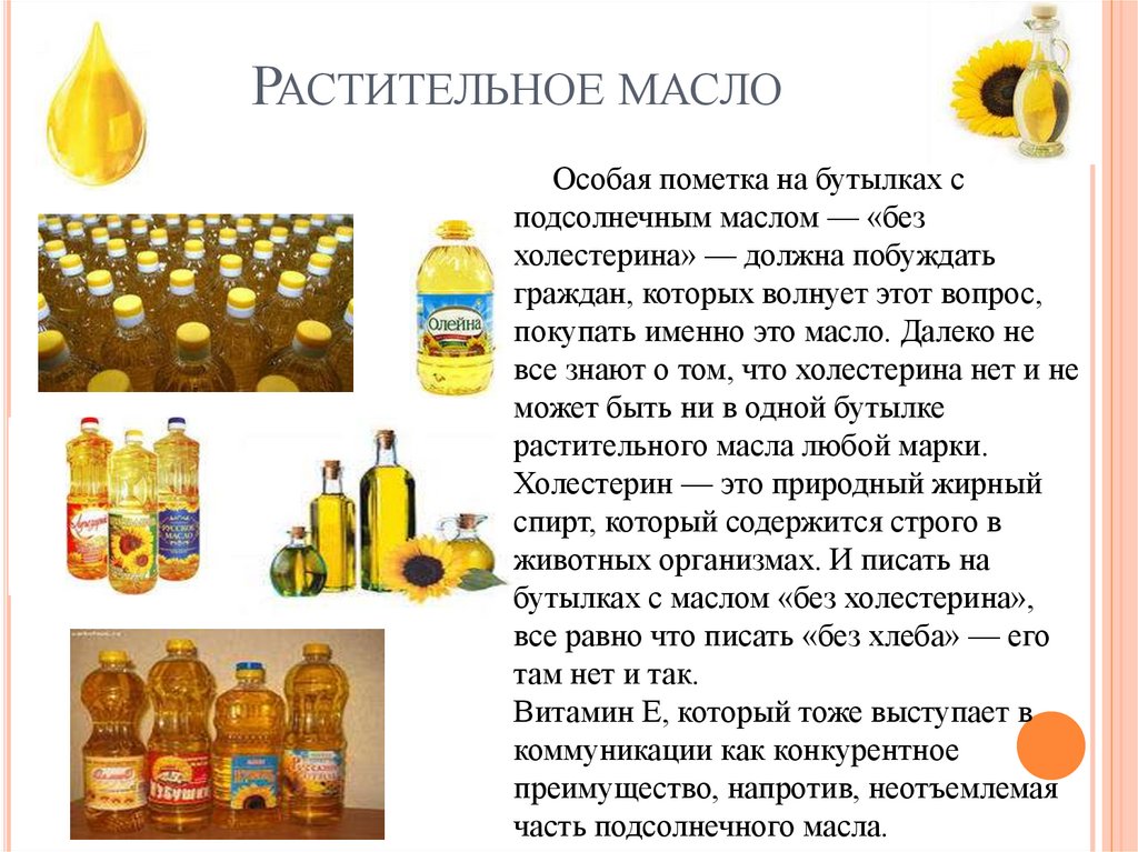 РАСТИТЕЛЬНОЕ МАСЛООсобая пометка на бутылках с