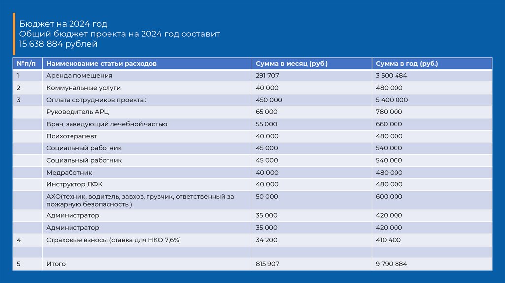 Бюджет на 2024 годОбщий бюджет проекта на 2024 год составит