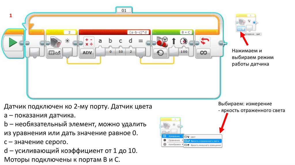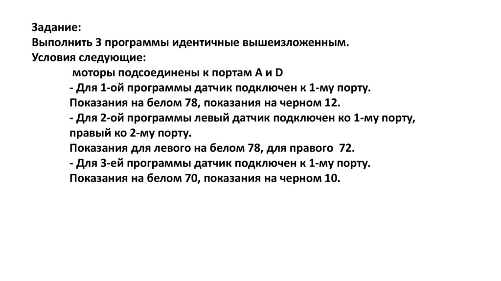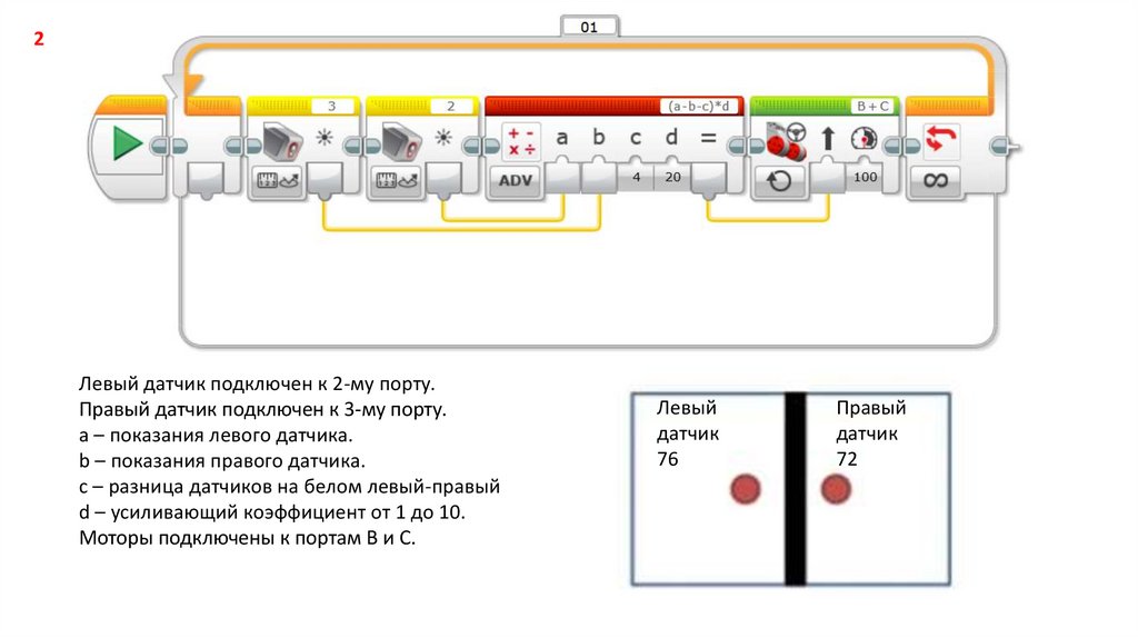 - Для 2-ой программы левый датчик подключен ко 1-му порту,