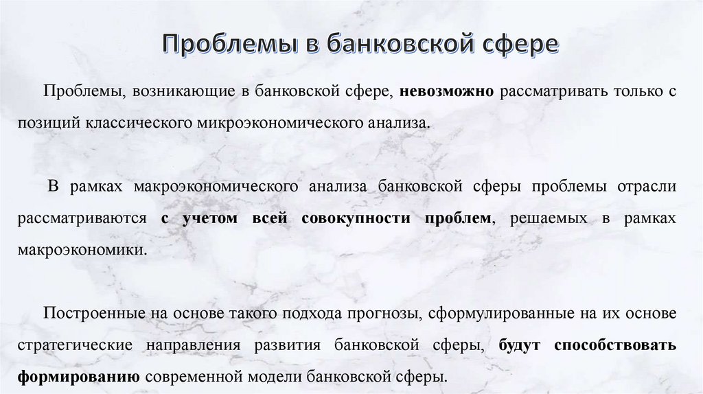 В рамках макроэкономического анализа банковской сферы проблемы отрасли