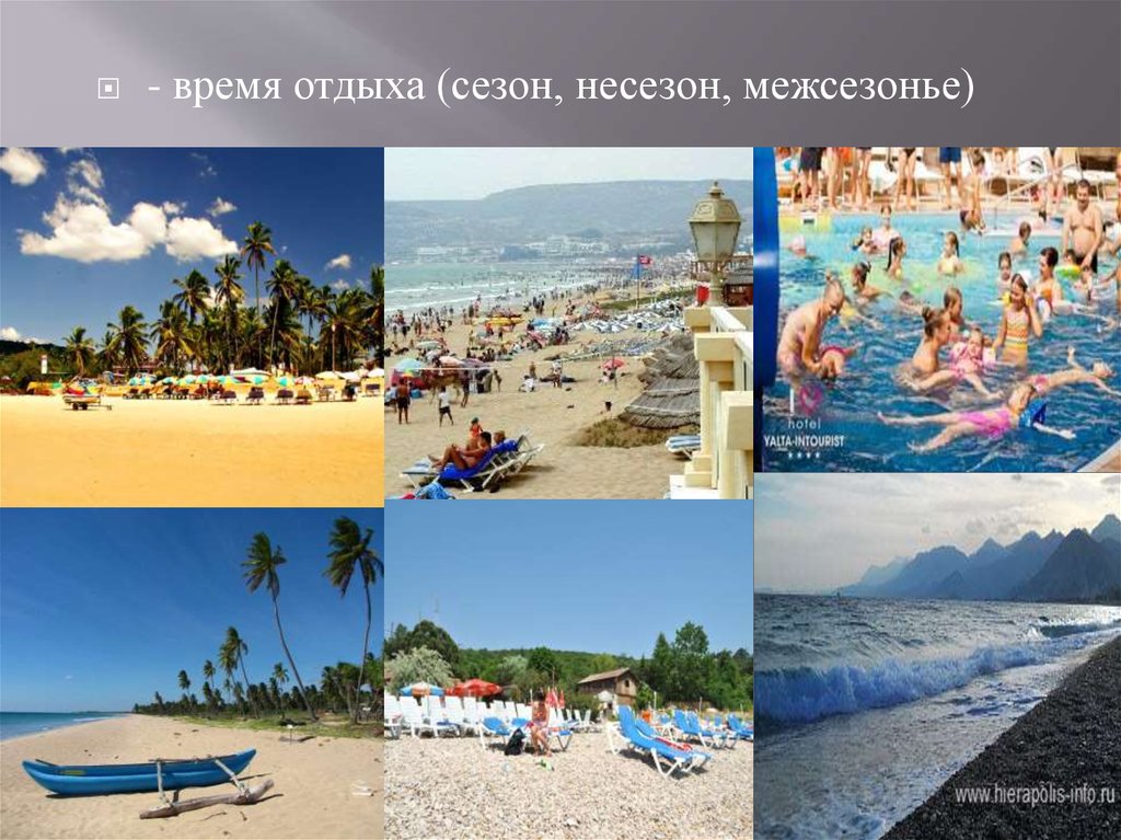 - тип размещения (отель, кемпинг, туристскаядеревня и т.д.) и его категории;
