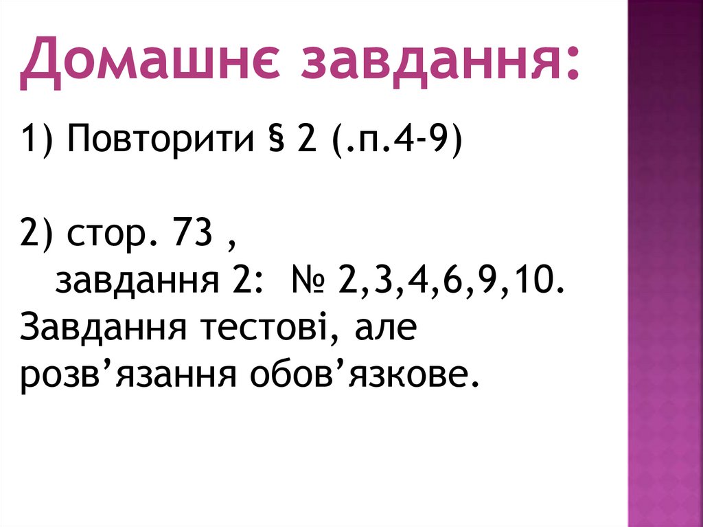 Домашнє завдання:1) Повторити § 2 (.п.4-9)
