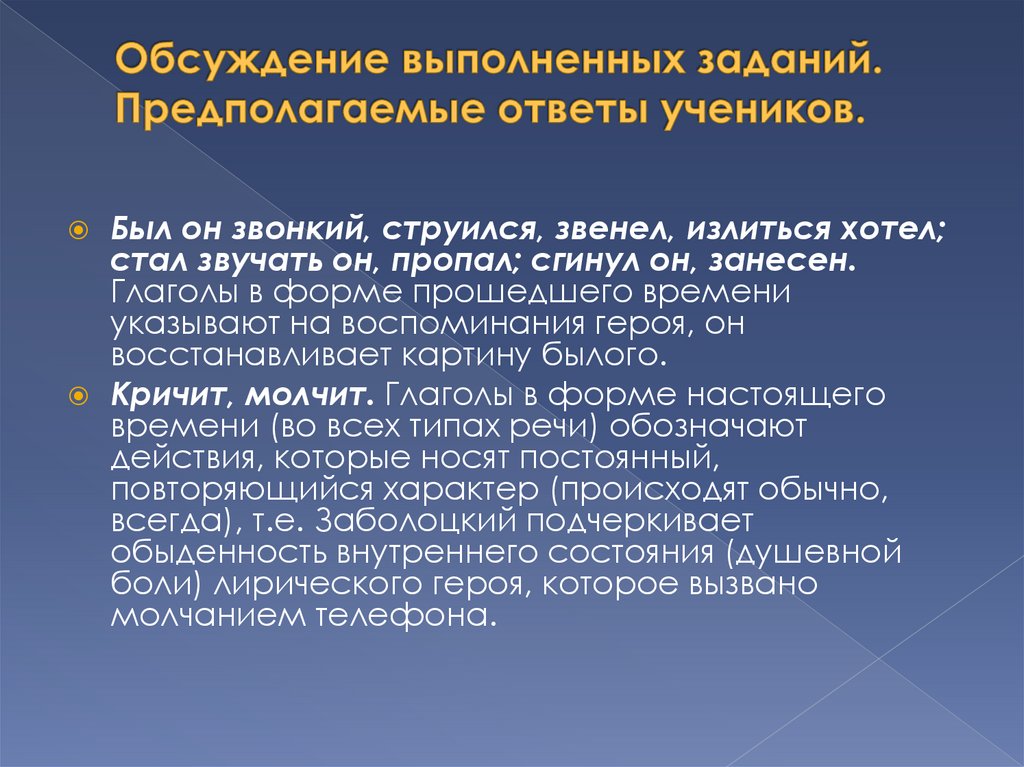 роль глаголов настоящего времени? Что